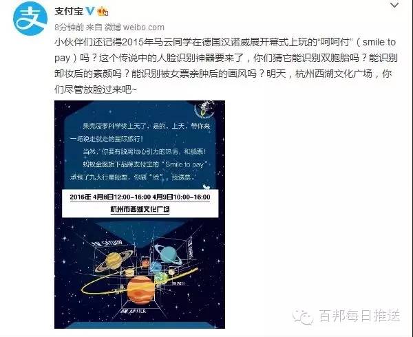 去年3月,在德國漢諾威消費電子、信息及通信博覽會上,馬云現(xiàn)場演示了支付寶新技術(shù)“Smile to Pay”,即“刷臉支付”。