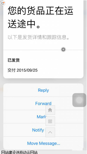 需要說一下,這兩個(gè)快捷操作不需要點(diǎn)擊,只要滑動(dòng)就能實(shí)現(xiàn),蠻方便的,可惜就郵件才有,其他APP還沒,有待添加。向上滑可以選擇回復(fù)等。