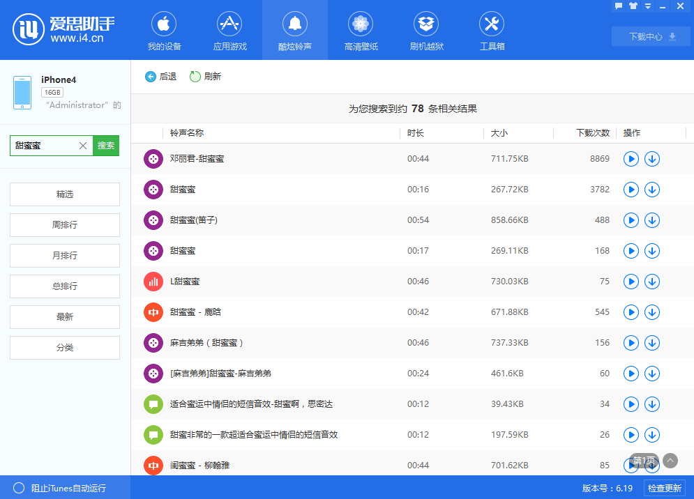 4. 或是在愛思助手中點(diǎn)擊【酷炫鈴聲】中下載你想要的鈴聲。